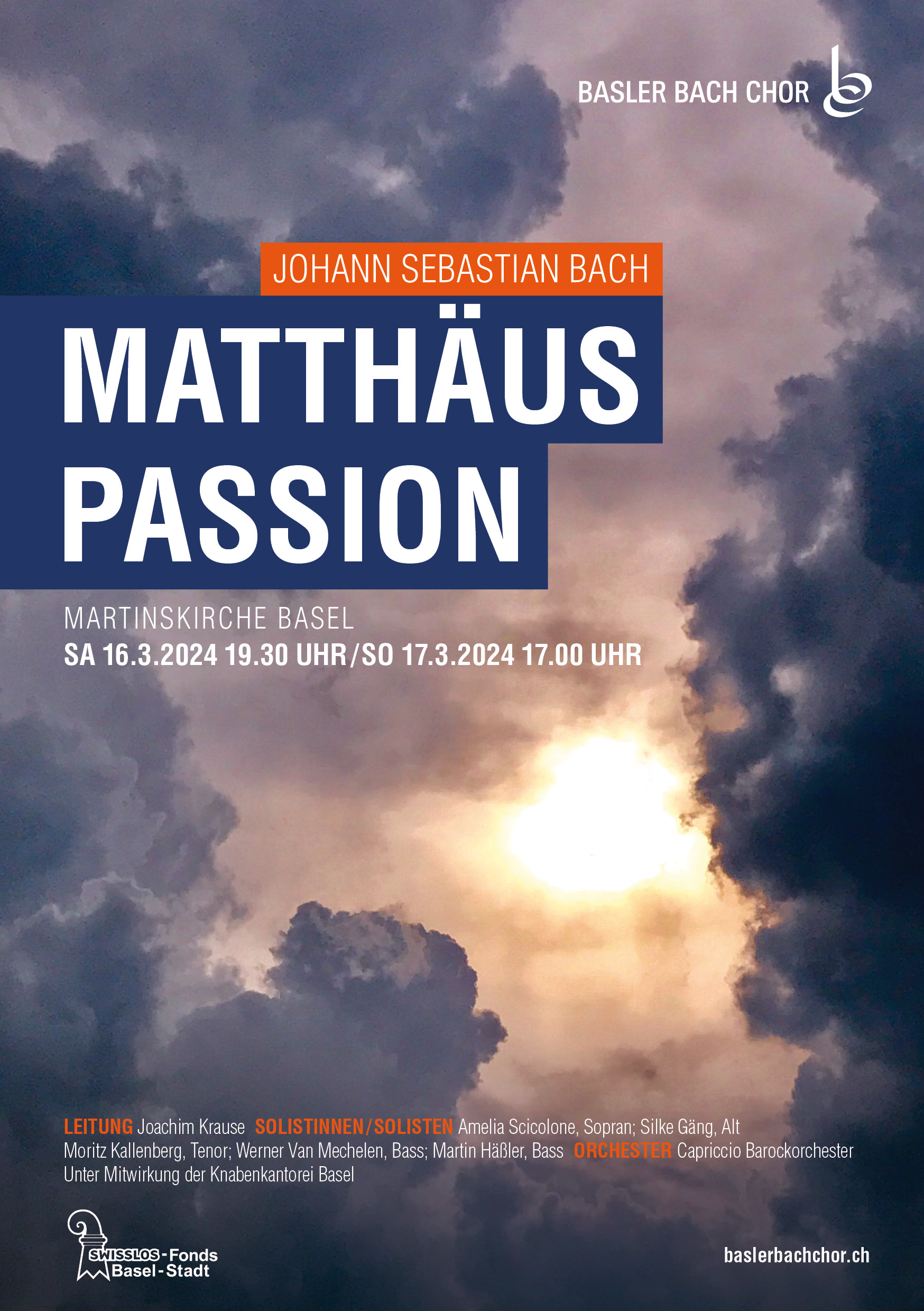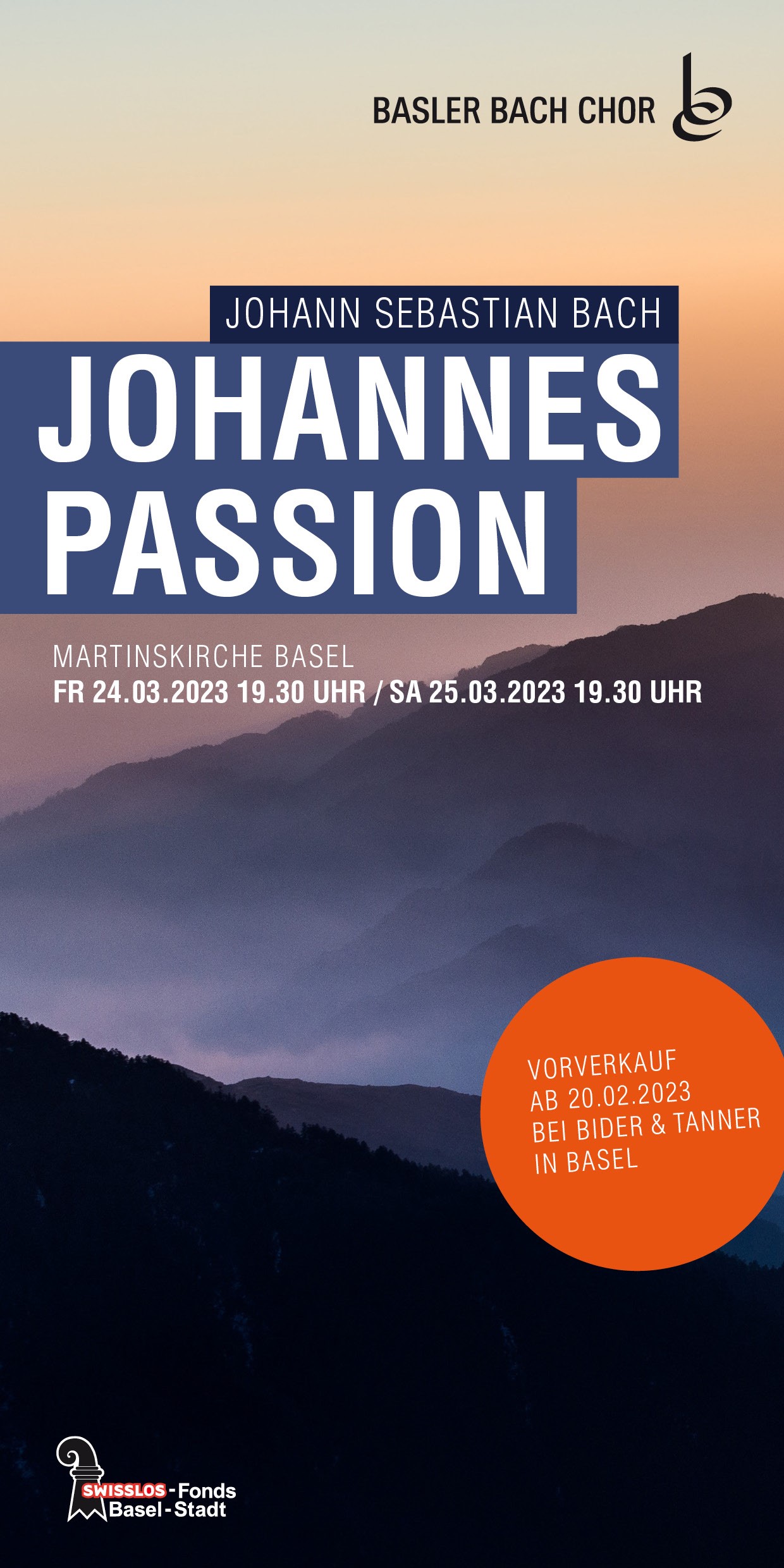 Zum ersten Mal in der über 100-jährigen Geschichte des Basler Bach-Chors wurde ein Konzert abgesagt. Aufgrund der Corona-Krise mussten die Aufführungen vom 21. und 22. März 2020 abgesagt werden. Die Konzerttermine der «Johannespassion» wurden aber auf Freitag, 24. und Samstag, 25. März 2023 verschoben.